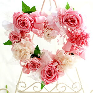【7日前予約品】 電報 結婚式 花 プリザーブドフラワー リース『ピンクハート』 祝電 結婚祝い プレゼント 友達 女 フラワーギフト 薔薇 バラ 枯れない花 誕生日プレゼント 女性 彼女 女友達 20代 30代 プロポーズ 結婚記念日 妻 カップル 記念日 記念日ギフト 披露宴 プリザ