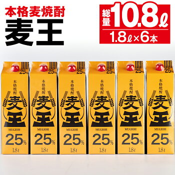 【ふるさと納税】≪鹿児島本格麦焼酎≫麦王パック(1.8L×6本・計10.8L)軽快な味わいと口いっぱいに広がる豊かな香りを楽しめる麦焼酎!【岩川醸造】